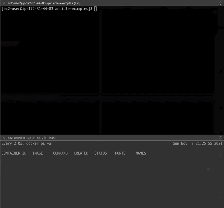 definition 하위에 컨테이너 서비스에 대한 명세를 넣을 수 있다. (출처: https://docs.ansible.com/ansible/2.9/modules/docker_compose_module.html#examples) 3.2. 컨테이너 확인 부분