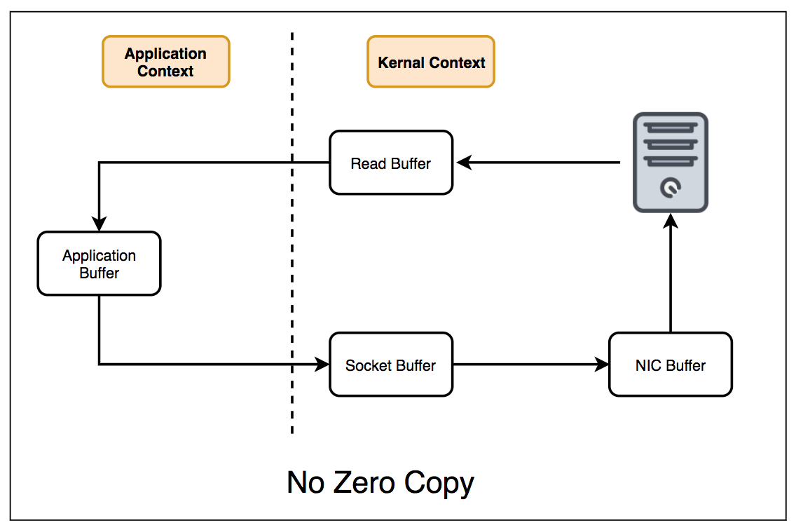 제로 카피가 아닌 경우, 커널 영역과 어플리케이션 영역 간 문맥 교환이 발생합니다.