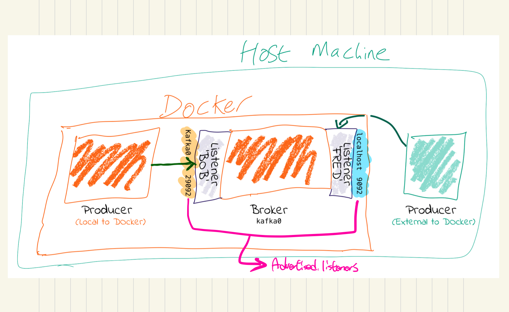 브로커는 하나 이상의 리스너(listener)를 통해 외부 요청을 받습니다. advertised.listeners 는 클라이언트가 브로커에게 요청할 때, 클라이언트 입장에서 브로커를 찾을 수 있는 호스트 정보를 설정합니다. 이 설정은 초기 메타 데이터 전달 과정에서 클라이언트로 전달되고, 이 정보를 바탕으로 클라이언트가 브로커로 요청합니다. 여기서 중요한 것은 클라이언트와 브로커의 네트워크 환경이 다를 경우, 클라이언트가 브로커를 찾을 수 있도록 설정해줘야 한다는 것입니다.