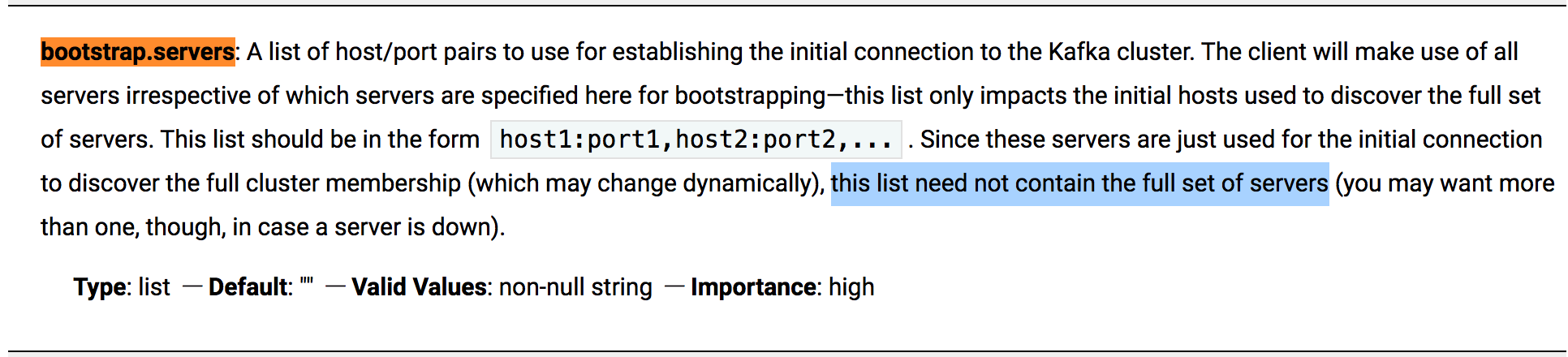 bootstrap.servers 에 관한 공식 문서 내용 (출처 : https://kafka.apache.org/documentation/)